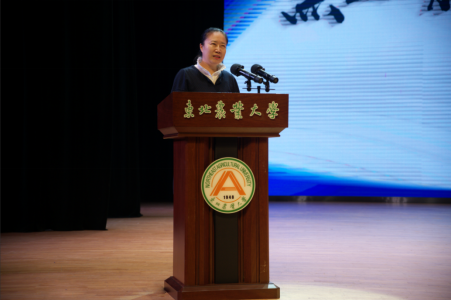 张颖在致辞中向与会师生介绍了学院创办“黑土·耕读”讲堂的初心所在和未来所向。她表示,“黑土”是学院学科专业特色的凝练,是赓续“办学为农”初心的体现。耕读是一种教育理念,“耕”以践行,“读”以厚识,是情怀使命和价值追求的体现。创办“黑土· 耕读”讲堂就是要让“耕读传家,读书济世”“手脑并用、知行合一”“一手拿书本、一手拿锄头”的精神品格在新时代资环学子身上熠熠发光。她指出,学院将依托学院长期崇学事农的教育教学实践,深度挖掘教育元素,精心设计讲堂内容,以“黑土·耕读”讲堂为载体,坚持立德树人根本任务,积极探索人才培养模式,挖掘学院文化的精神内涵,弘扬黑土文化,倡导耕读文明,引导学生在学思践悟中知农爱农、学农兴农。