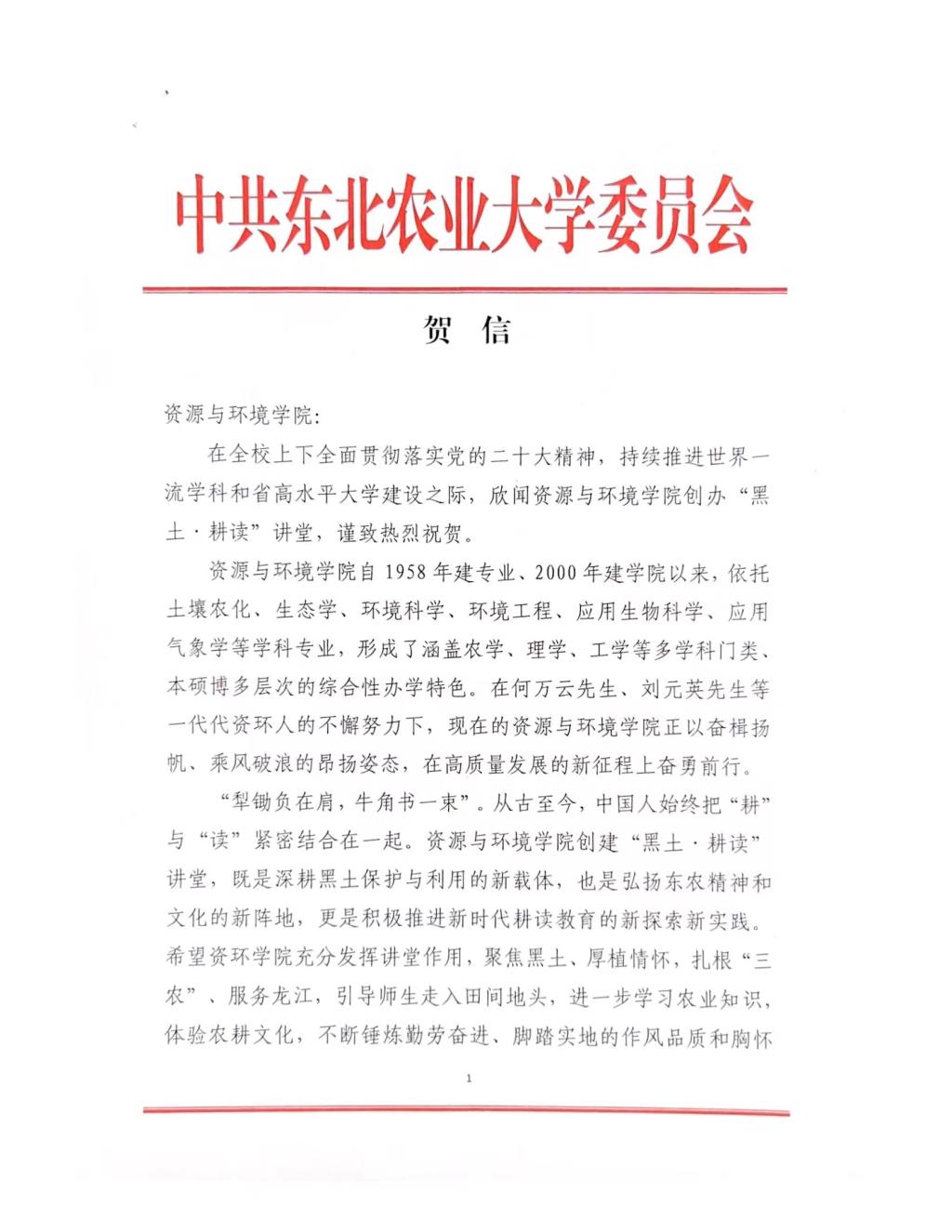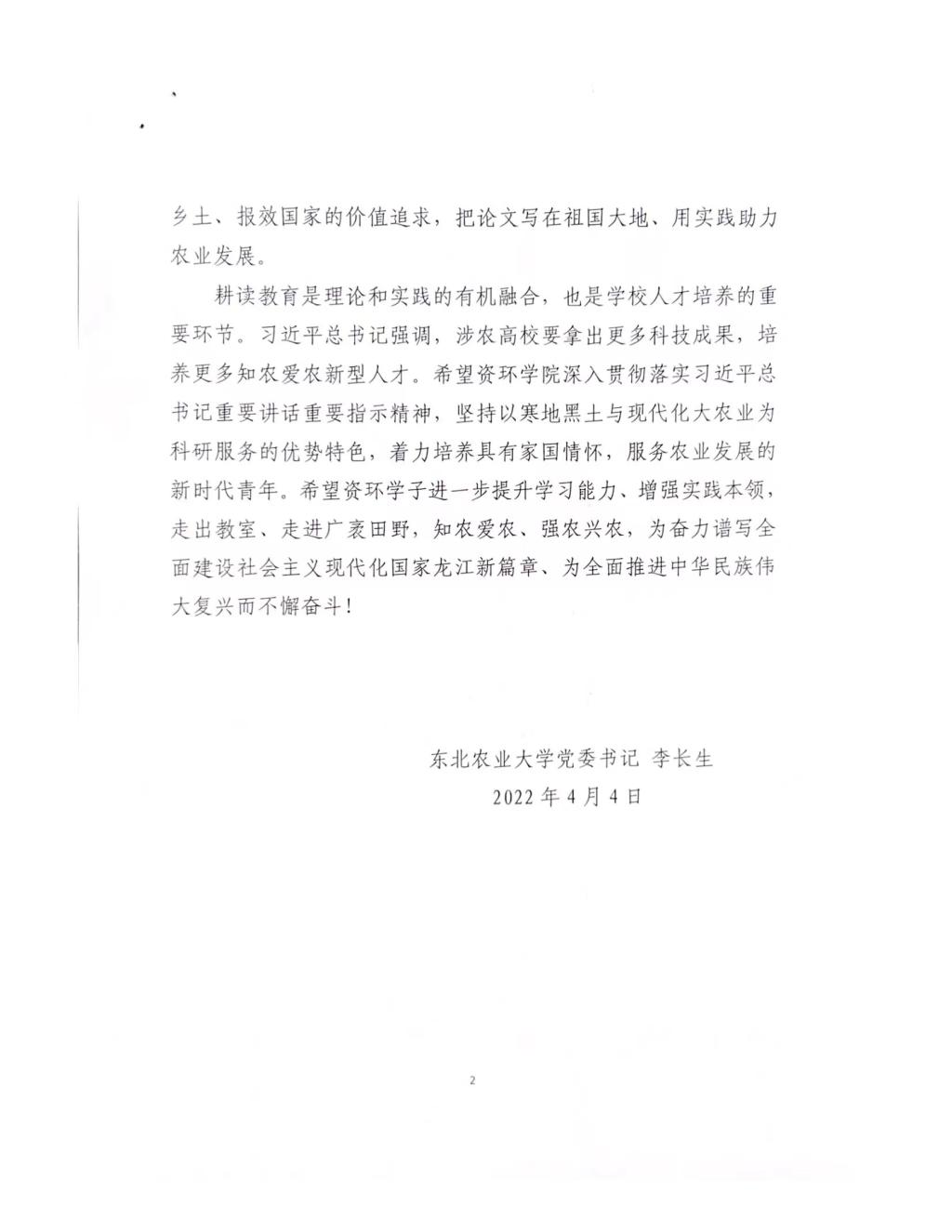 校党委书记李长生向我院发来贺信!
