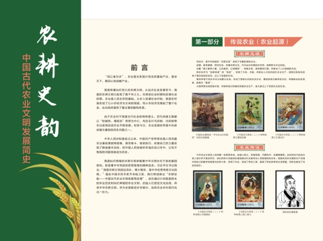 该展示区将以时间为脉络详细介绍中国农业发展史,通过展板介绍的方式梳理中国历史进程中在农业发展上取得的突出成就,让学生了解农耕文化,坚定学农爱农信念。