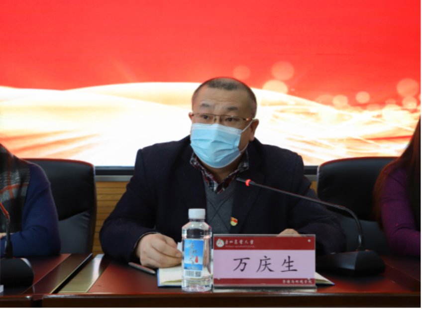 学院党委书记万庆生作了题为《深入贯彻落实六中全会精神凝心聚力推动学院高质量发展》的主题讲话,他说到,2021年是党和国家历史上是具有里程碑意义的一年,作为“十四五”的开局之年,科学把握新发展阶段、贯彻新发展理念、服务和融入新发展格局,是学院当前和今后工作的重大任务。万庆生代表学院党委提出三点希望与要求,一是要认清形势,在把握大局中增强紧迫感和责任感。学院的发展必须置于学校,乃至全省和全国的大环境工作中,立足学院实际,全面把握高等教育发展的“势”与“变”,“危”与“机”的关系逻辑,在机中抢先机,在危机中育新机、在变局中开新局。二是要提高站位,加强党建工作。学院党委在假期要积极谋划好下学期党建工作,加强党员教育、加强党支部书记培训、加大党建基础工作检查、加强制度建设与执行、加强党建工作与中心工作融合。三是要提高安全意识,加强安全与管理。牢牢把握住意识形态和舆情方面的安全,学生工作队伍和导师要做好学生引导和教育工作,关注舆情。学院实验室严格执行管理制度,排查好安全隐患,做好预案。