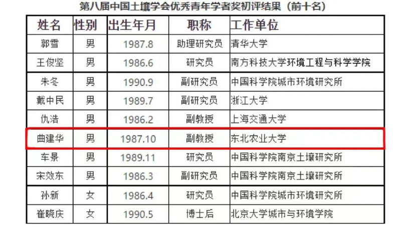 “中国土壤学会优秀青年学者奖”每两年评选一次,每次全国范围内获奖人数不超过十人。据往届获奖名单统计,这是全国第二所省属院校获此殊荣,也是黑龙江省首次获得该奖项。曲建华老师获此殊荣,既体现了我校青年学者在土壤保护与修复领域的突出贡献,也客观反映了我校对相关学科青年人才培养的高度重视。