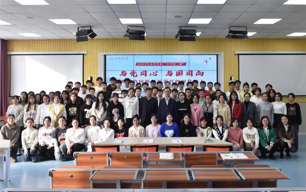 3月16日下午,校党委书记李长生在研究生楼653教室,以《与党同心与国同向做堪当民族复兴重任的时代新人》为题,为太阳成集团tyc41183学生代表讲授2023年春季学期“开学第一课”。授课由校党委副书记兼工会主席庞玉红主持。