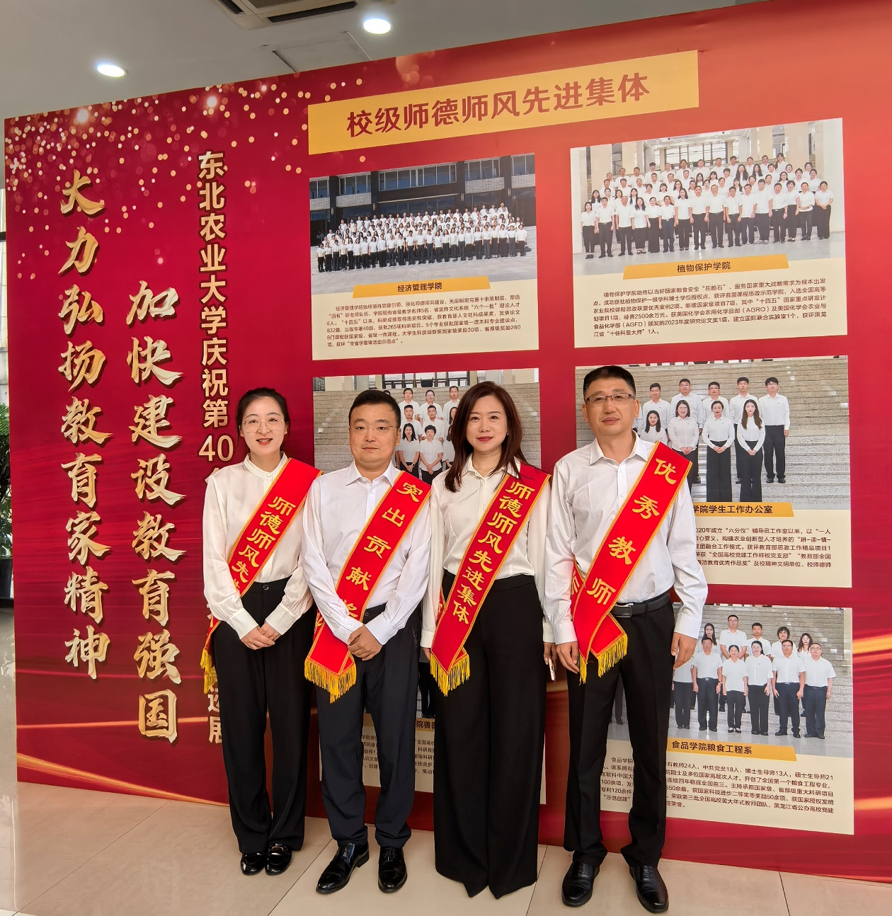 学院教师牢记嘱托、勤勉工作、奋发有为,在学校庆祝第40个教师节表彰评选活动中,学院张颖教授、行政负责人曲建华荣获“突出贡献奖”,学生工作办公室荣获“师德师风先进集体”,学工办主任韩亮荣获“优秀教师”,赵昕悦荣获“师德师风先进个人”。