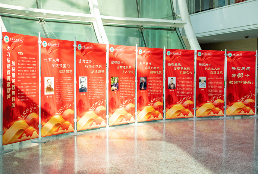 强国必先强教,强教必先强师。学院精心设计制作了6块宣传展板,内容紧扣教育家精神,并围绕理想信念、道德情操、育人智慧、躬耕态度、仁爱之心、弘道追求等六个方面介绍了优秀教育家先进事迹,号召广大教师和教育工作者向典范和楷模学习。