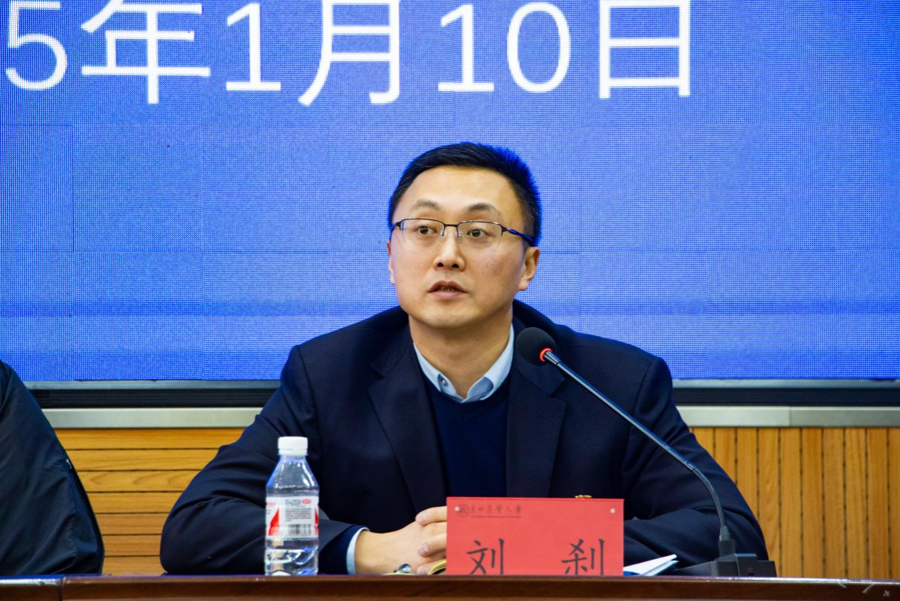 接下来,学院党委副书记袁洪波、副院长姜昭分别对各自分管的工作情况进行总结并提出未来工作安排。袁洪波指出,学院学生工作将继续以学院为中心,抓好队伍建设,充分发挥党建的带动作用,凝聚学工发展合力,助力学院高质量内涵式发展。并就寒假留校学生安全稳定、服务保障亚冬会志愿者、就业工作、假期心理健康教育等重点工作进行了详细的布置安排。姜昭结合分管工作总结了学院在本科教育教学审核评估、教育教学、实验室安全等方面取得的成绩和存在的问题,并主要围绕本科教育教学审核评估整改工作布置了2025年的教育教学工作的重点任务,着重强调了实验室安全问题,要求全体研究生导师紧抓假期留校学生实验室安全工作,确保实验操作安全、规范,及时与学生沟通,掌握进度,确保科研任务高效推进。