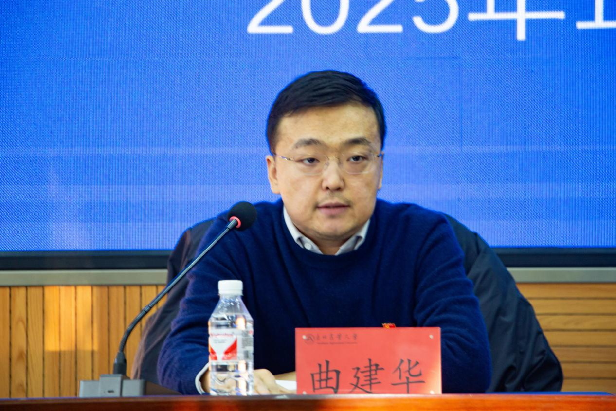 会议初由院长曲建华对学院2024年党政工作成效进行全面梳理总结,指出我院在推动教学、科研、人才引进培养、学科专业建设、特色办学、学生工作等方面均取得了显著成效。随后,曲建华就2025年学院工作重点进行了安排。他强调,新的一年,一要始终坚持以习近平新时代中国特色社会主义思想为指导,围绕立德树人的根本任务,立足东北黑土区,面向北方现代化大农业,以服务“三农”,助力乡村振兴为奋斗目标,在强基、提质基础上突出“显效”,推动学院工作更高质量发展;二要坚持完善有组织科研攻关机制,深入分析学院学科发展态势,进一步补短板、凝特色,致力取得更大发展进步;三要加强青年学者培养,探索学院组织机构及激励方式改革,通过更加完善的考核体系引导学院教师各项工作的开展,助推学院持续向好发展。
