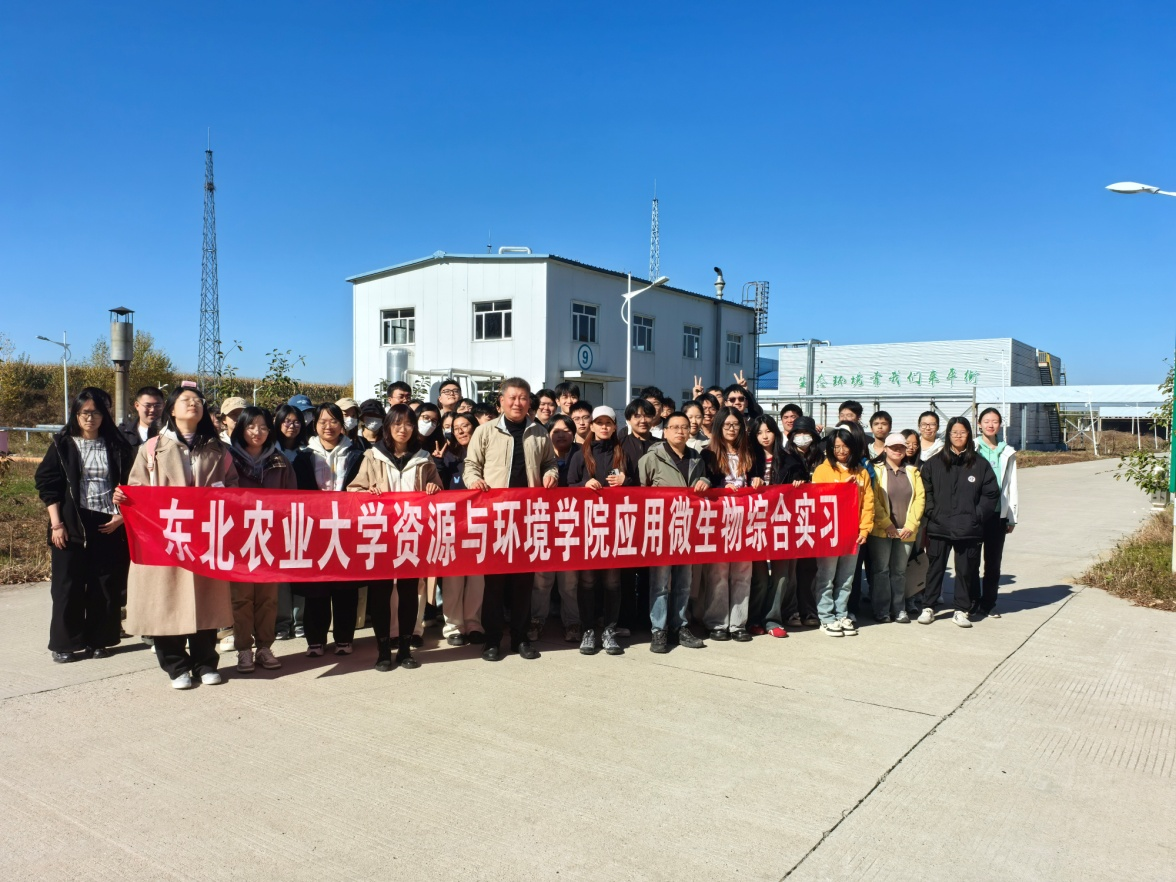 2025年10月10日,太阳成集团tyc41183应用生物科学专业2022级本科生和农业资源与环境专业2022级本硕博班全体同学,在教师侯宁、徐诚蛟、戴航宇、李先玥带领下,来到肇东市博能环保科技有限公司进行应用微生物综合实习。