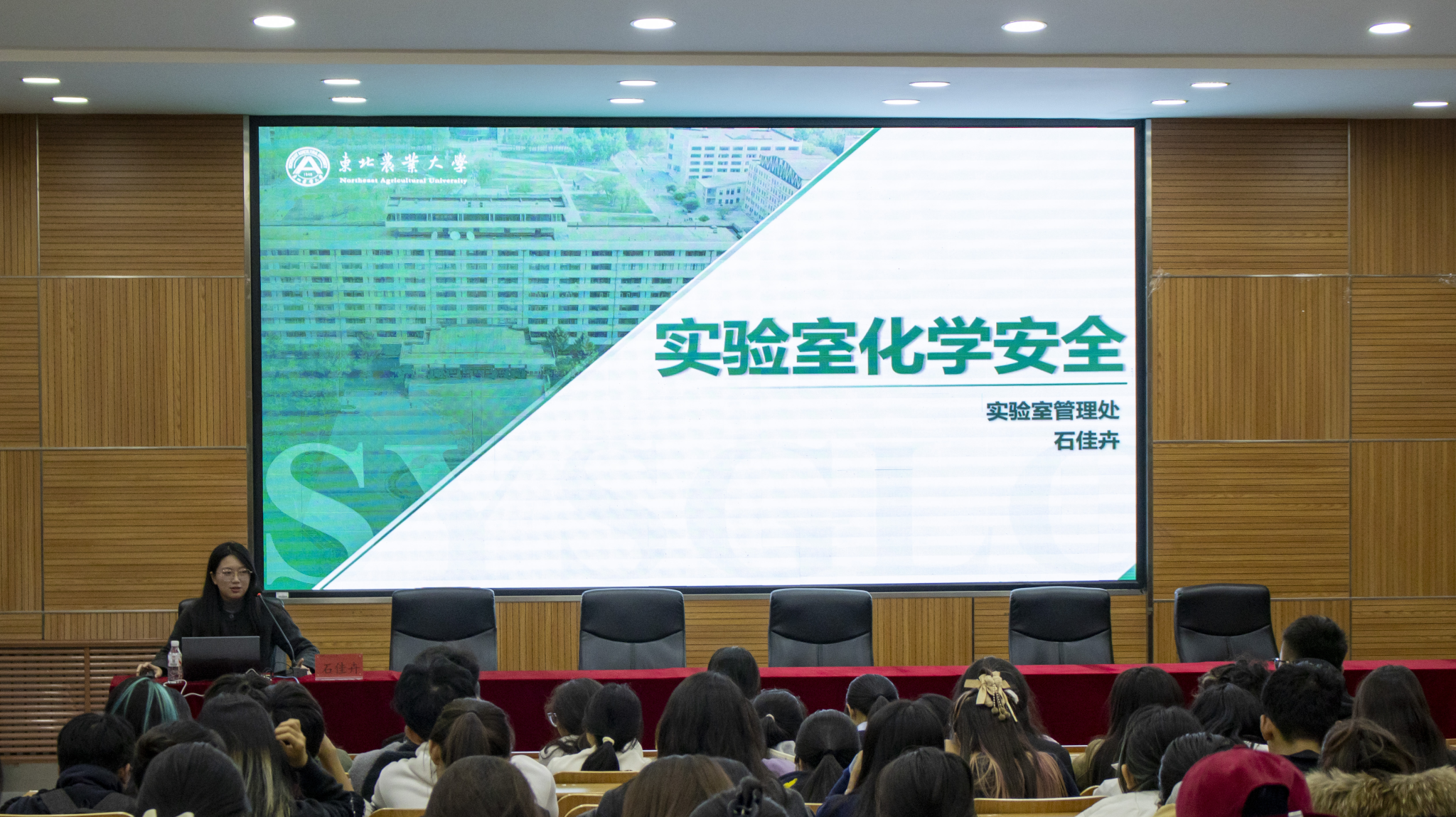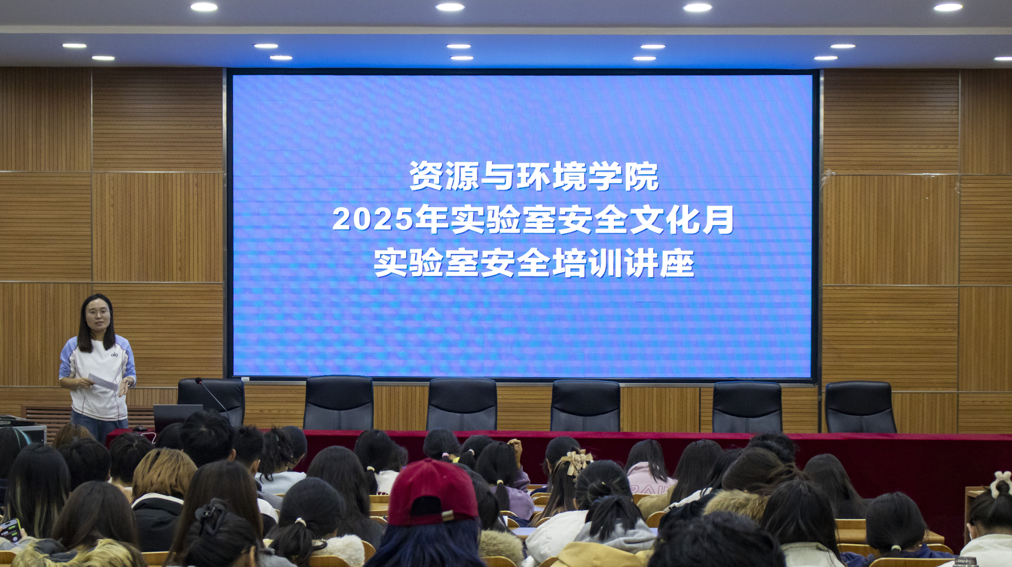 为深入贯彻落实“安全第一、预防为主”方针,增强2025级新生的实验室安全意识,帮助大家掌握实验室安全知识,营造安全、和谐的实验环境,学院开展了本年度实验室安全文化月系列安全活动,包括实验室安全检查、实验室安全知识展板展览、安全准入知识培训及考核等。10月29日,学院特别邀请实验室管理处技术安全科的李欣老师和石佳卉老师,为全体2025级新生带来了一场精彩且实用的实验室安全讲座。培训由学院安全主管赵佳英老师主持。