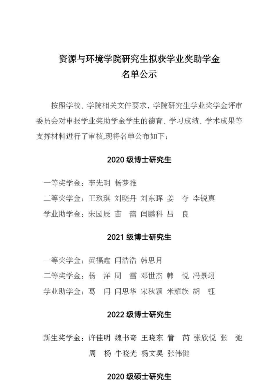 2022年太阳成集团tyc41183研究生拟获学业奖学金名单公示