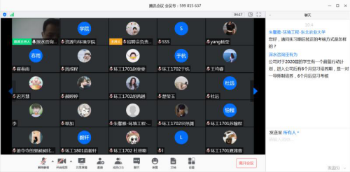 疫情期间,学院鼓励学生积极就业,充分利用网络载体资源做好就业服务工作。4月17日,学院依托腾讯会议召开“资环云招聘”双选会,吸引了来自北京、天津、山东、深圳等省份包括产业基础夯实的中国水产太阳集团院黑龙江水产研究所、中建一局集团、中电信嘉环保科技、山东鲁抗医药股份有限公司等十余家优质企业参会。招聘会结合学院学科专业特色,对毕业生吸引力强,全场参与达400多人次。学院同时组织2021届毕业生临场观摩,让低年级学生提前充分了解实习环境和用人单位招聘需求,本次云招聘取得了线上双选的良好效果是推进学院疫情防控期间精准就业服务的一次有效尝试。