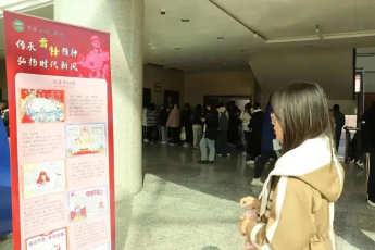 同学们下课后停留参观的场景